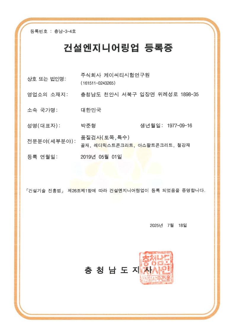 건설엔지니어링업 등록증 페이지 정보 작성자 최고관리자 댓글 0건 조회 29회 작성일 25-08-18 14:26 목록 본문 다음글 KOLAS 인정서 24.03.19 목록 댓글 0 댓글목록 등록된 댓글이 없습니다.